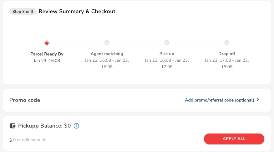 Please note: the current pricing has only factored in the distance and delivery, and has not factored in the time required to finish the task. We will discuss how to "