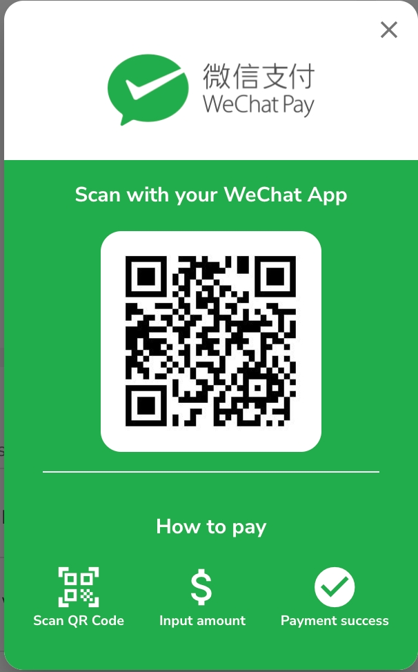 - If AliPay or WeChat Pay is chosen, the system will generate a QR code. You can use the respective payment application to scan the QR code and complete the transaction.