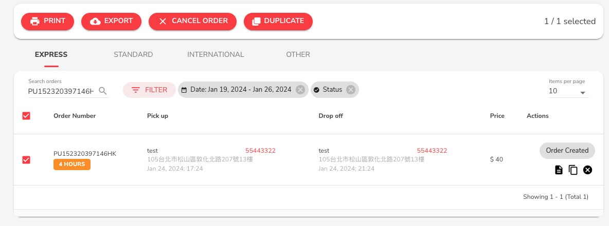 5. Created orders will have the "Order Number" for each item, write down this order number in the package you want to deliver.