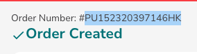 2. Copy the number above "Create Order" on the order completion page.